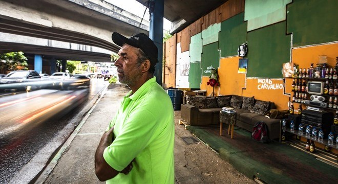 Moab Carvalho, de 47 anos, mora desde 2017 embaixo de uma ponte da rodovia presidente Dutra em Guarulhos, na Grande São Paulo, e naquele espaço montou um local em que diz ter feito para “compartilhar paz” com quem passa por ali.