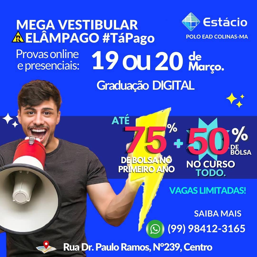 Se você sonha em fazer aquela graduação dos seus sonhos, mas nesse momento o orçamento está apertado, não se preocupe, pois a Universidade Estácio Polo Colinas-Maranhão, irá fazer o Mega Vestibular Relâmpago Tá Pago. Através desse vestibular, você vai estudar esse semestre totalmente de graça.