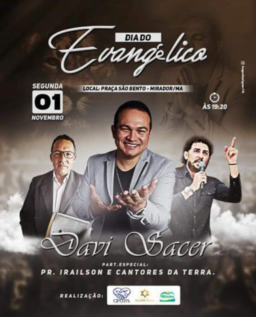 MIRADOR-MA ANUNCIA DAVI SACER EM COMEMORAÇÃO AO DIA DO EVANGÉLICO