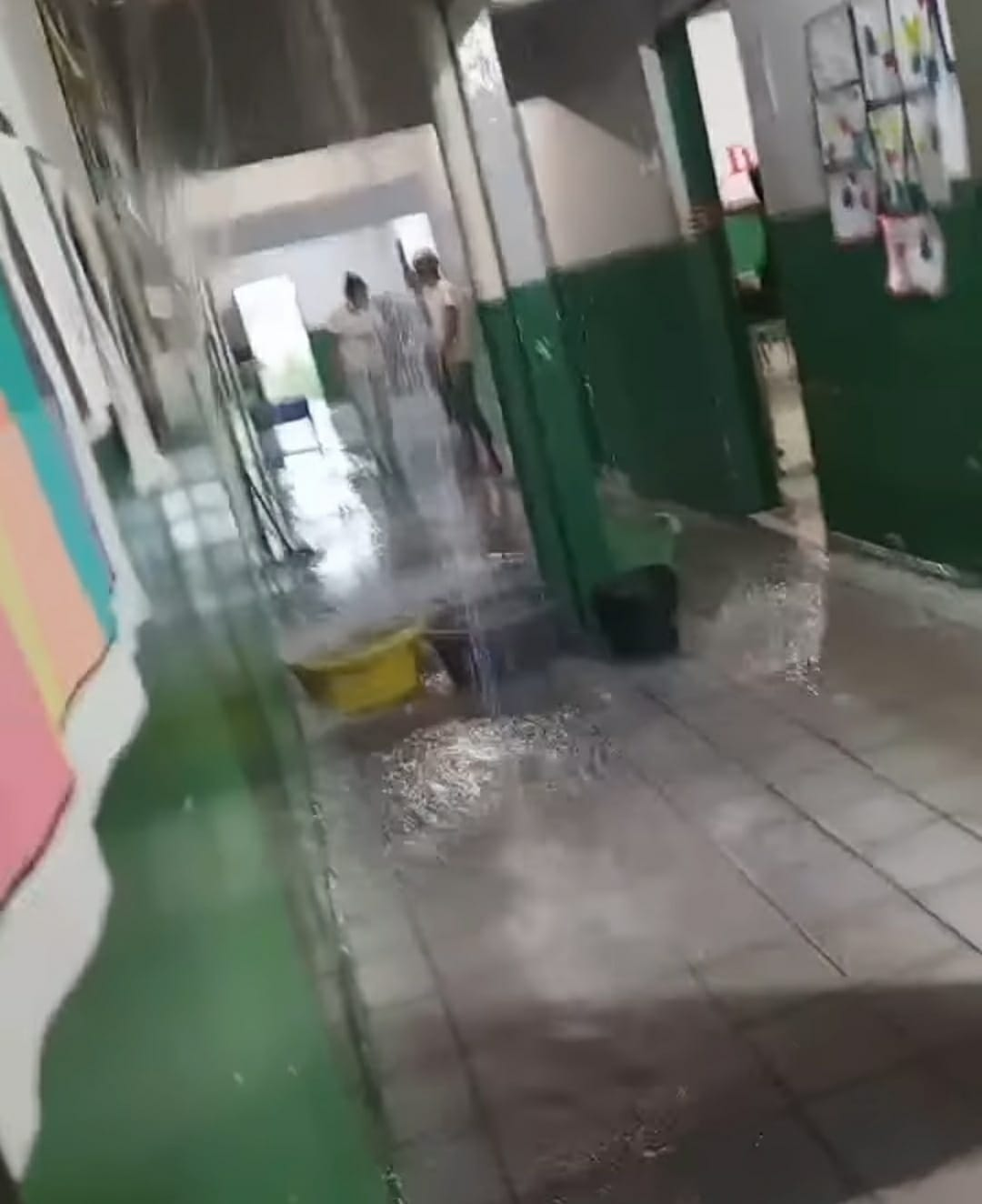 Inicialmente, para tentar minimizar os estragos, professores chegaram a colocar baldes no chão. Com a queda de água generalizada, e o chão já coberto pela precipitação, as cadeiras foram afastadas e o local interditado. O acontecimento é resultado de um tento antigo e com telhas já velhas e danificadas por conta do tempo.