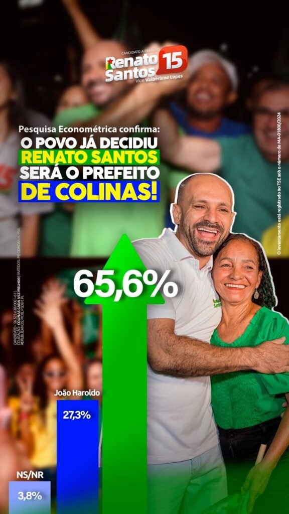 Confira: Segundo Pesquisa Econométrica, Renato Santos, lidera com 40 pontos de vantagem sobre o comunista João Haroldo em Colinas