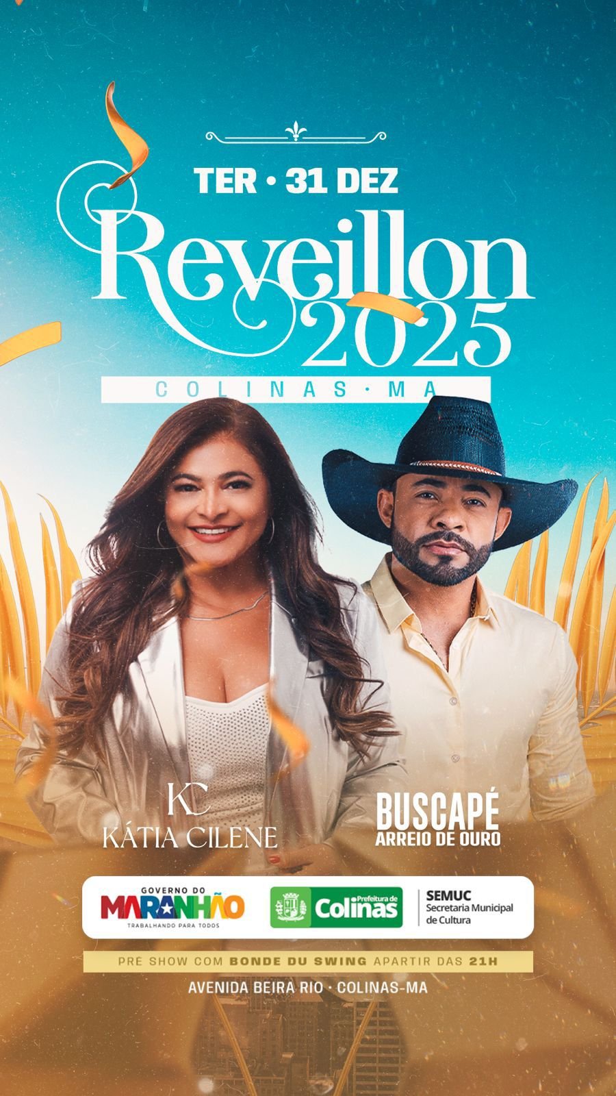 A chegada de 2025 será celebrada com uma festa memorável em Colinas, no interior do Maranhão. Realizada na tradicional Avenida Beira-Rio, o evento organizado pela Secretaria Municipal de Cultura (SEMUC), com apoio do Governo do Estado e da Prefeitura de Colinas, promete reunir milhares de pessoas em uma noite repleta de alegria, música e celebração.