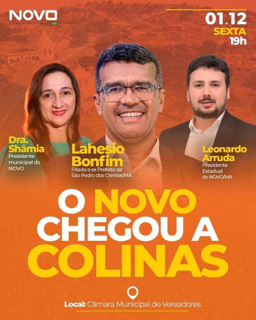 O Partido Novo chegará mesmo ao município de Colinas, esta sigla foi fundada no dia 12 de fevereiro de 2011, por 181 cidadãos de 35