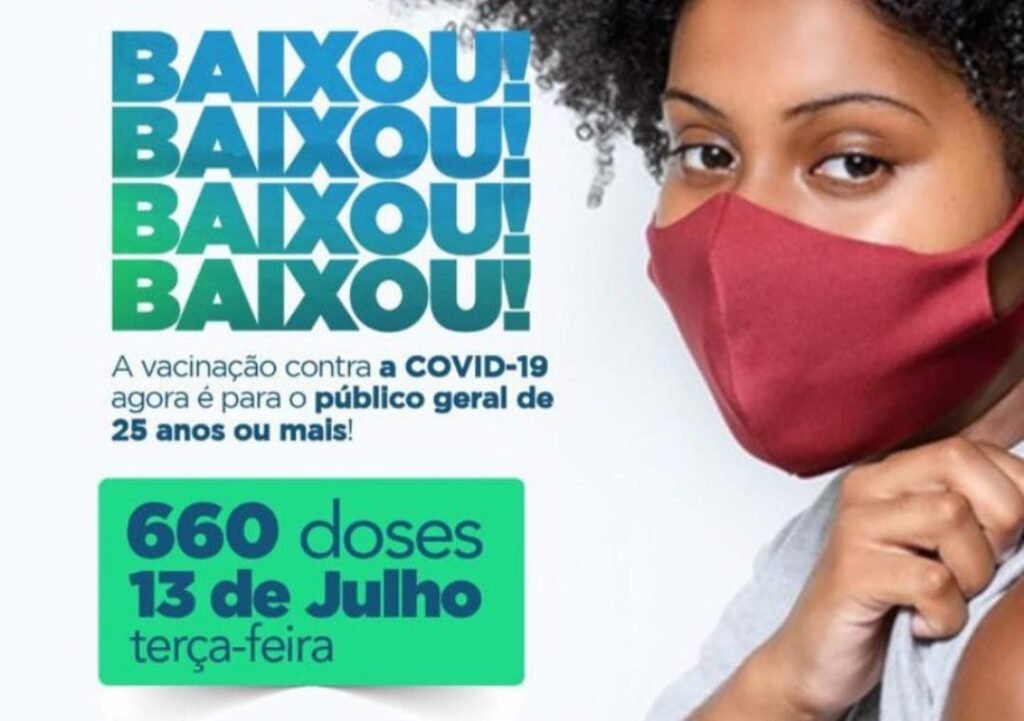 Nesta terça-feira (13), a secretaria de saúde, realizará a imunização das pessoas a partir dos 25 anos Vacinar é preciso para combater o novo Coronavírus,